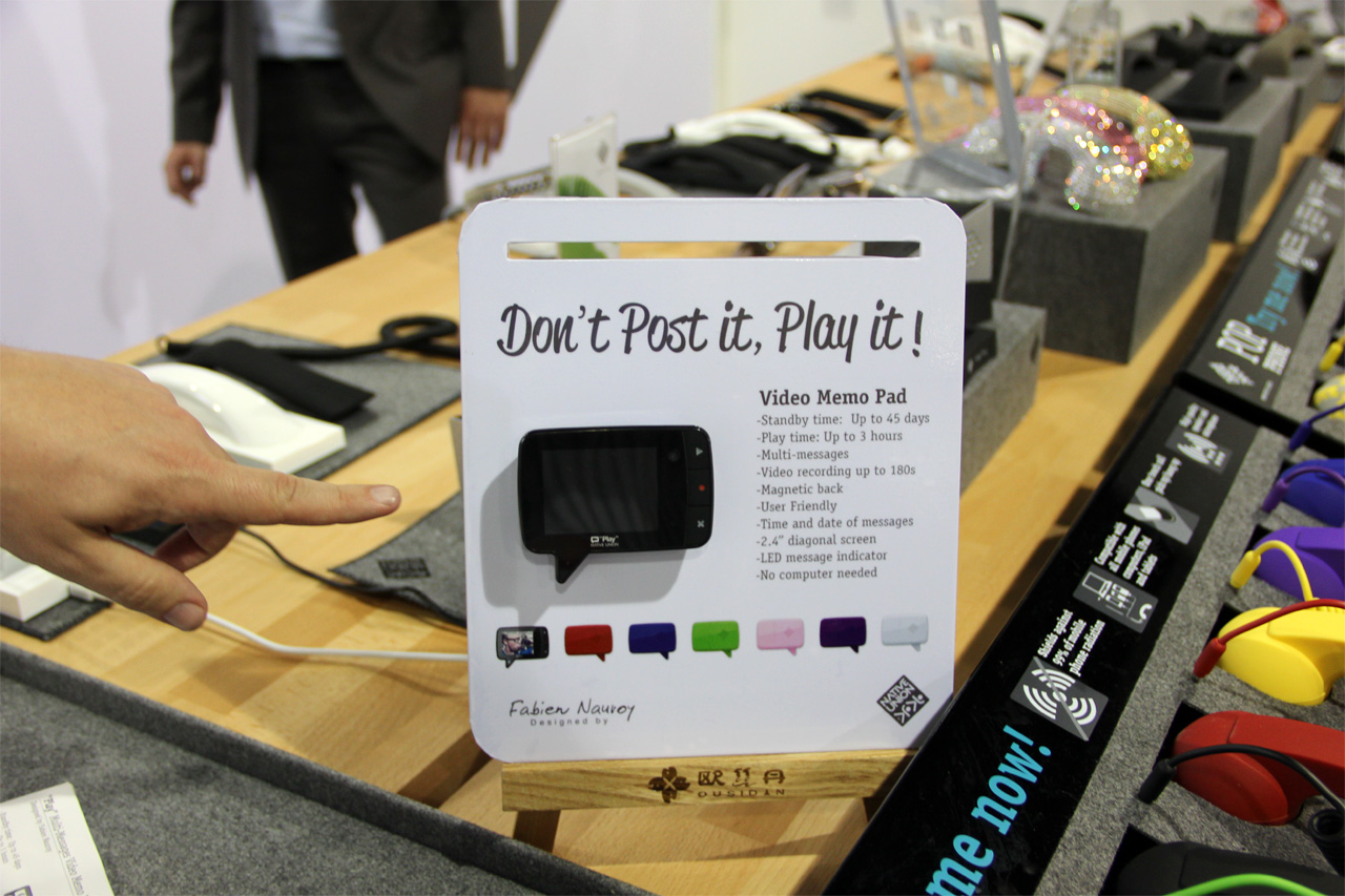 Их же разработка - видеомагнит на холодильник. Теперь не надо на холодильник лепить стикеры. Например, нужно вам сообщить мужу, что на первое - суп, а на второе - картошка с котлетой, - так теперь это не надо писать ручкой, надо взять этот видеомагнит, просто наговорить на него в камеру, после чего прилепить к холодильнику. Муж придет, включит и увидит вас во всей красе, произносящей сообщение. Стоит эта штука недорого, идея, на мой взгляд, хорошая.