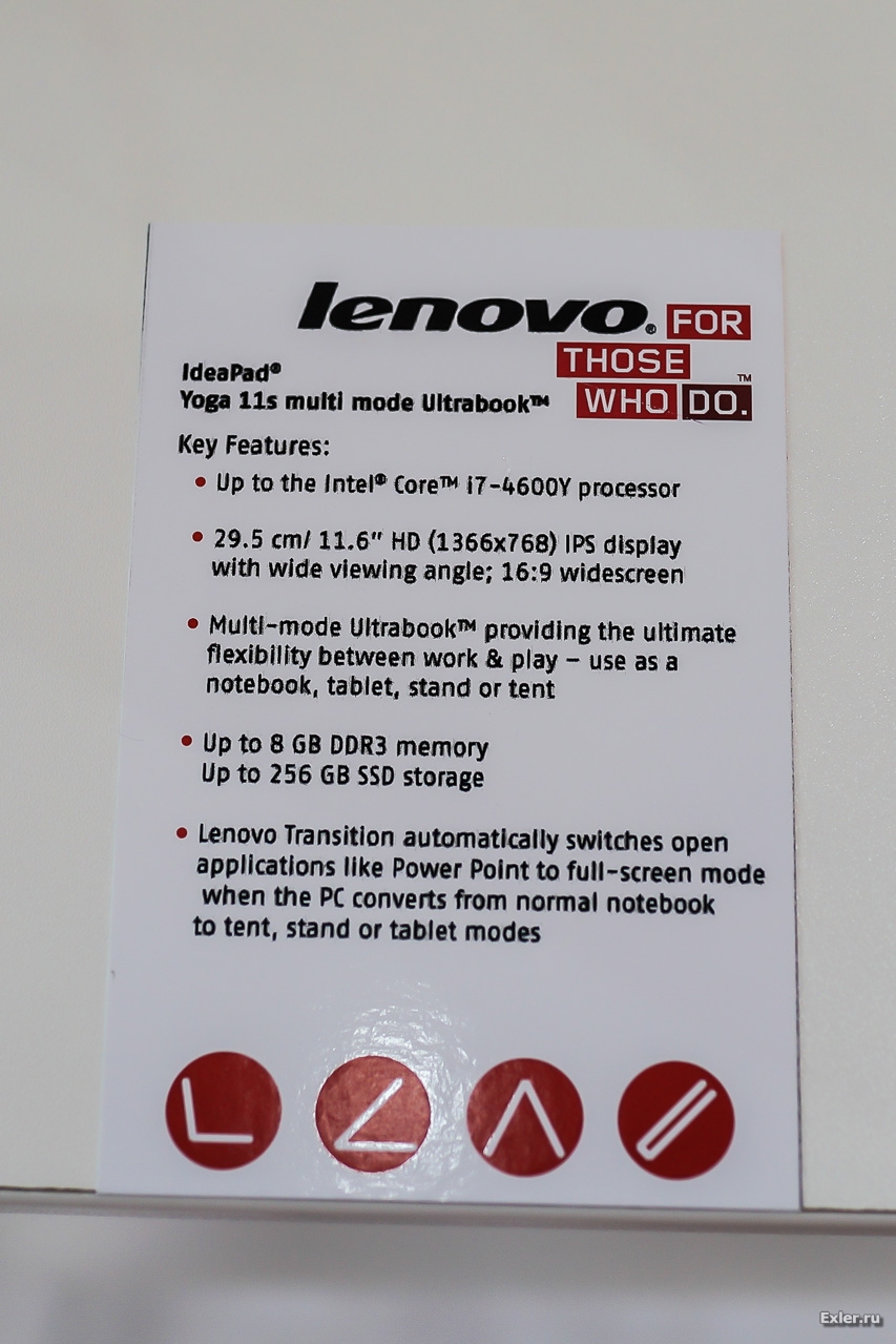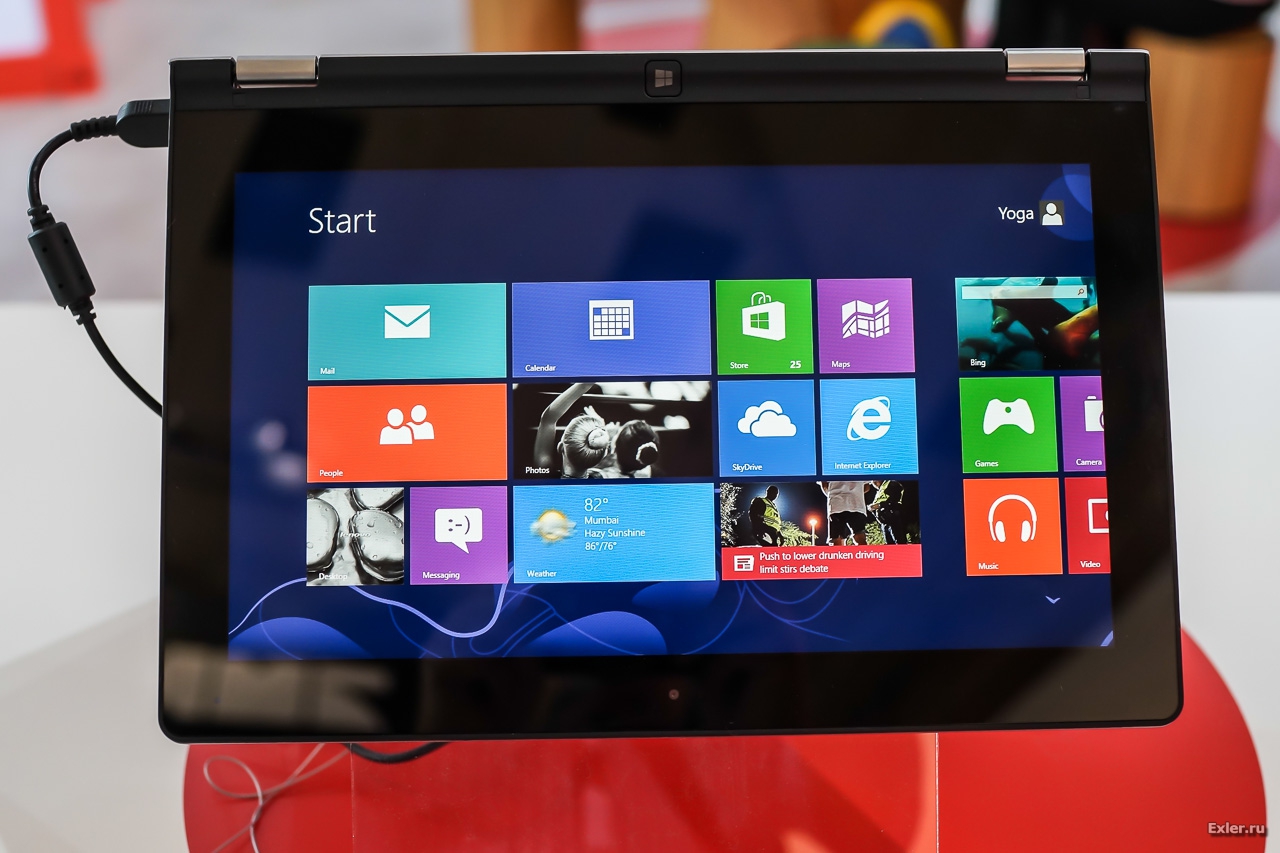 12-дюймовая Yoga. Характеристики - ниже. Вообще Yoga - очень неплохая моделька, но глюки с определением степени раскрытия крышки здорово портили впечатление. (При переводе в определенный режим трансформер блокировал клавиатуру - для удобства, но там было немало ложных срабатываний - например, при тряске в поезде или метро. Пока это вроде не ликвидировали.)