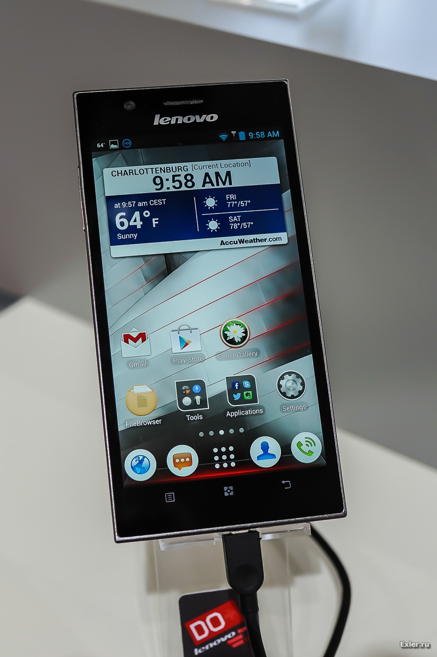 А вот знаменитый Lenovo K900. Дисплей 5,5" FullHD, очень тонкий и стильный. Мне они его привезли на тест - обзор скоро будет.