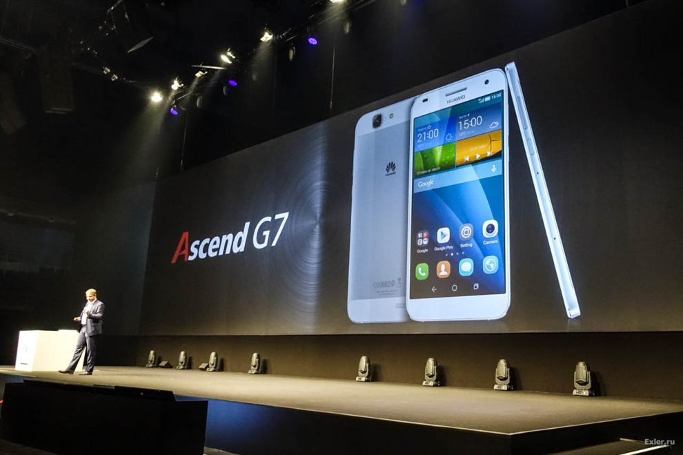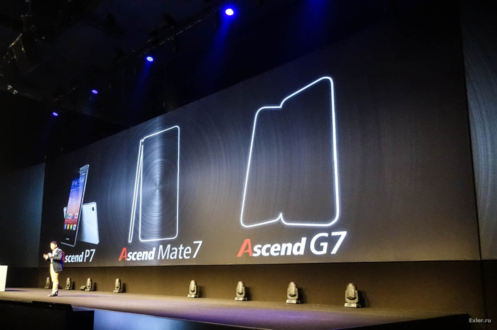 Три новинки представили в этот вечер. Уже знакомый Ascend P7 в новой версии, Ascend G7 (типа как недорогой премиум), ну и гвоздь программы - Ascend Mate 7.