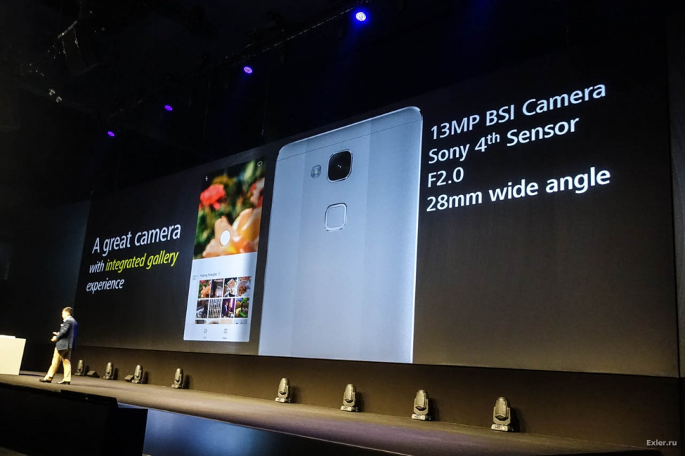 Далее представили модель попроще - Ascend G7. Он преподносится в качестве "премиум смартфона по бюджетной цене", но мы прекрасно знаем, что премиума по бюджетным ценам не бывает.