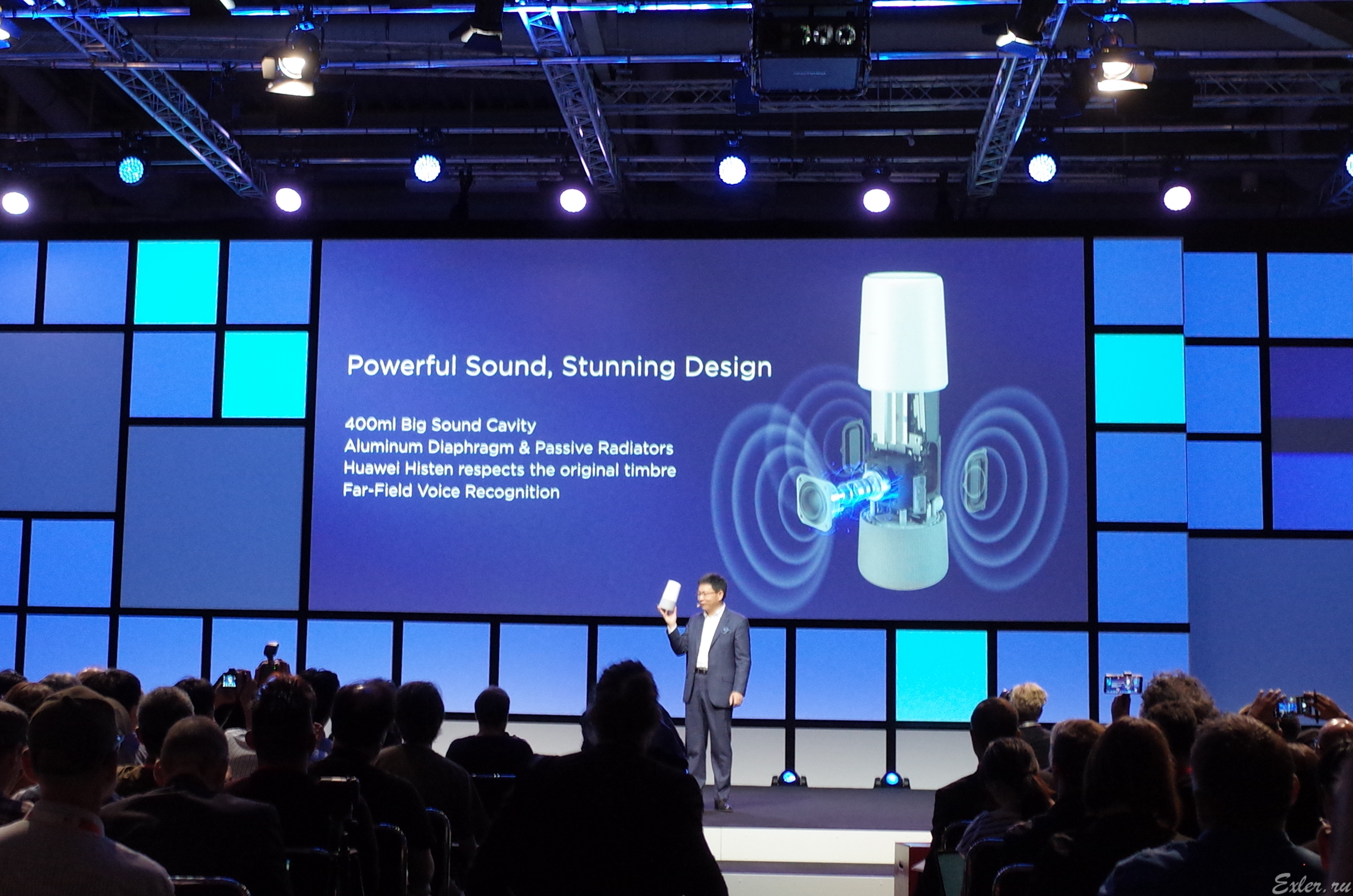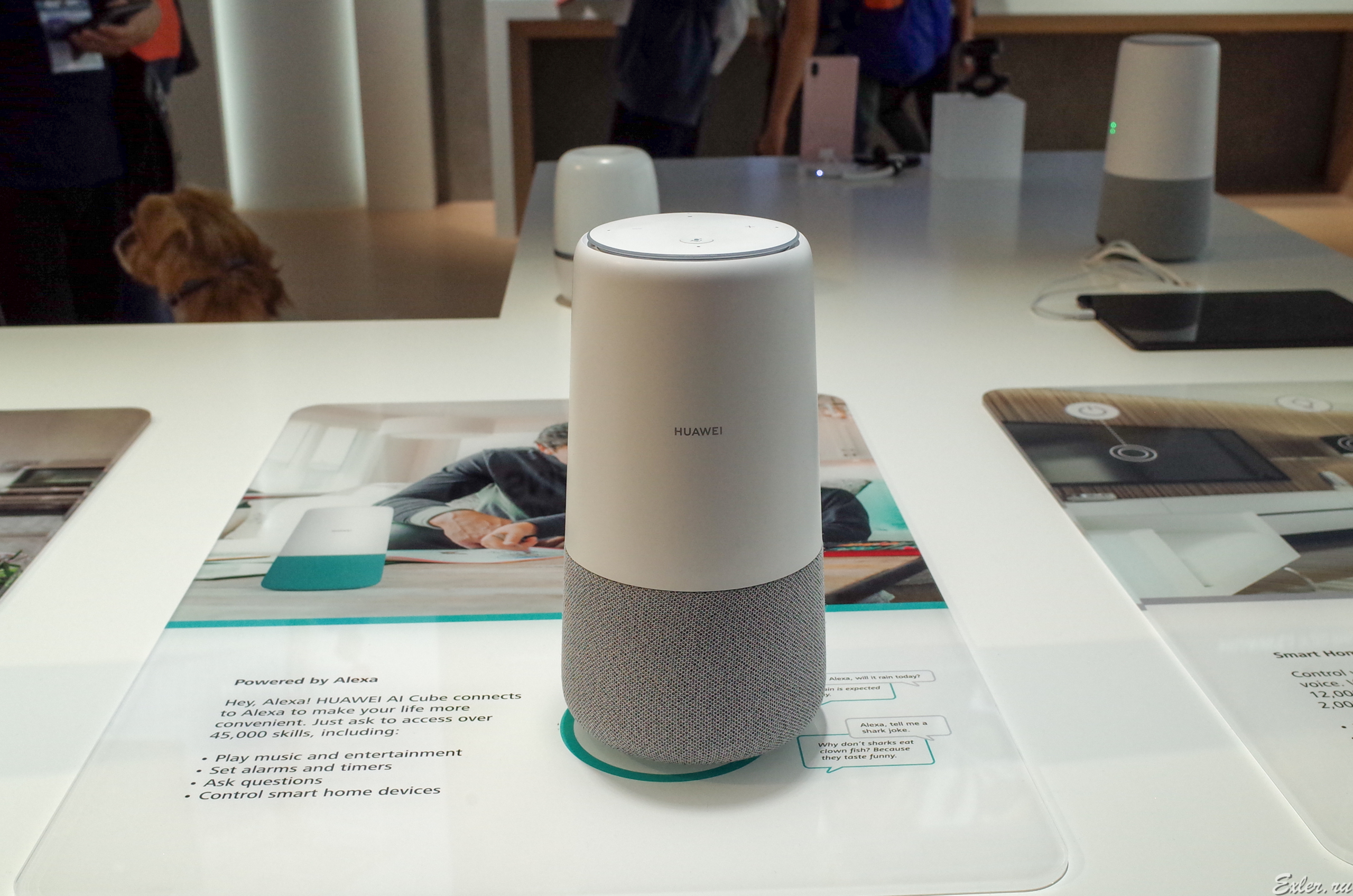 После этого представили новинку - Huawei AI Cube. Это гибрид умной колонки с амазоновским голосовым помощником Alexa, 4G-роутера и точки доступа Wi-Fi.