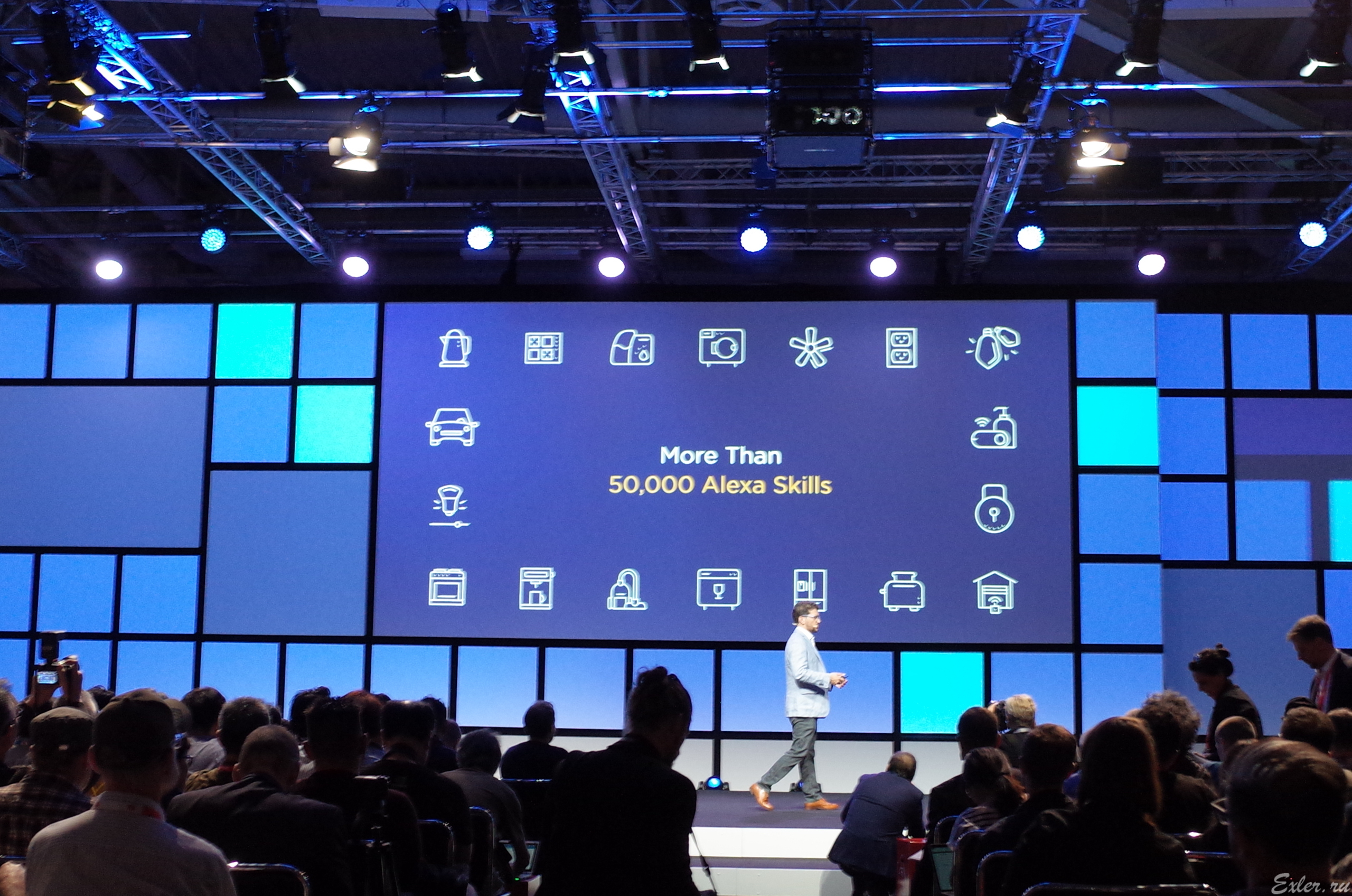 На презентации выступил представитель Amazon, который рассказал, что Alexa поддерживает порядка 50000 голосовых команд, так что вы можете и аудиотрек проиграть, и управлять умным домом, и пиццу заказать, и еще многое другое.