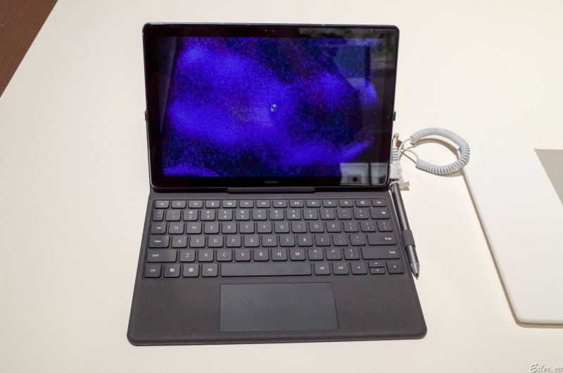 Демонстрировали Huawei MediaPad M5 в различных видах. В комплект версии Pro также входит клавиатура и перо-стилус.
