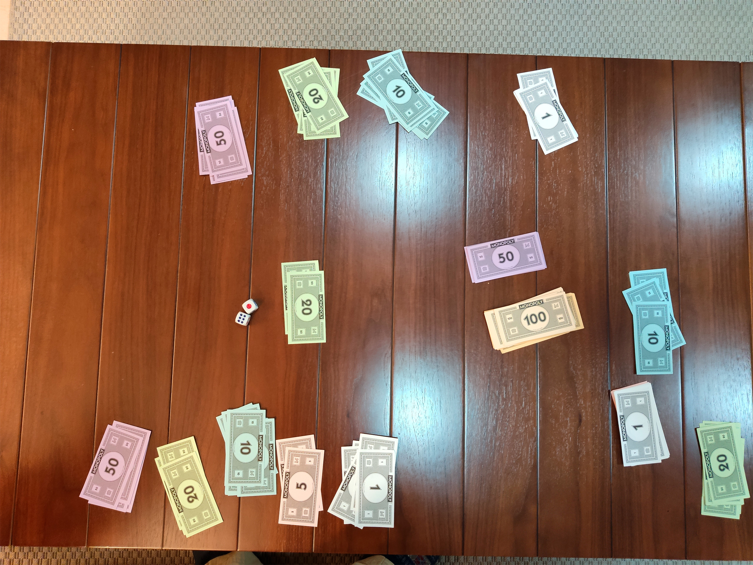 Младший Экслер где-то прочитал про игру в кости и потребовал с ним сыграть. Ну, хорошо: взяли денег из "Монополии", стали играть. Но игра в кости, описанная в "Трех мушкетерах", очень примитивная. Делают ставку, кидают, у кого больше - тот выиграл. Все.