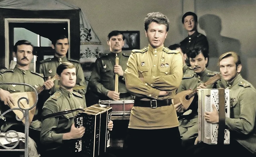 Во Второй Мировой артисты ездили на фронт, подымать боевой дух. И гармошки были, если Твардовский не соврал. Вот они и повторяют.