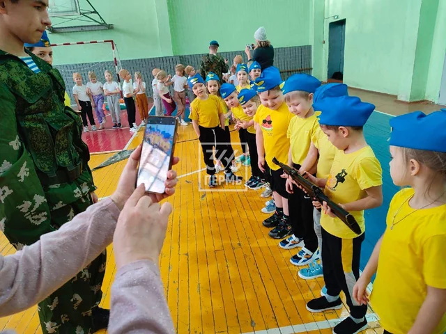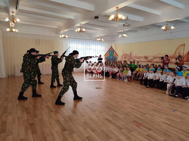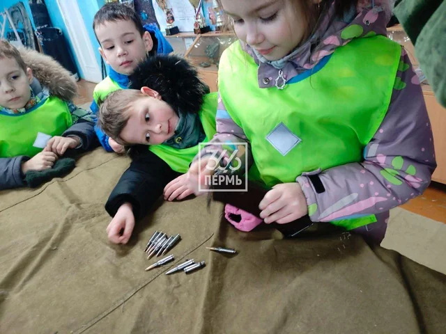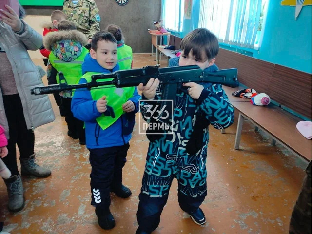 В городе Чайковский Пермской области провели "игровую мобилизацию". Малолетним мальчикам и девочкам объясняли, как обращаться с оружием, как заряжать, как целиться. Доблестные дяди-военные, пришедшие к детишкам, продемонстрировали свои навыки владения оружием. Детишки и их родители, судя по всему, были очень довольны.