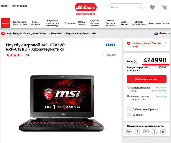 А вот кому прикольный игровой ноутик? Да, ерунда, всего под полмиллиона рублей.