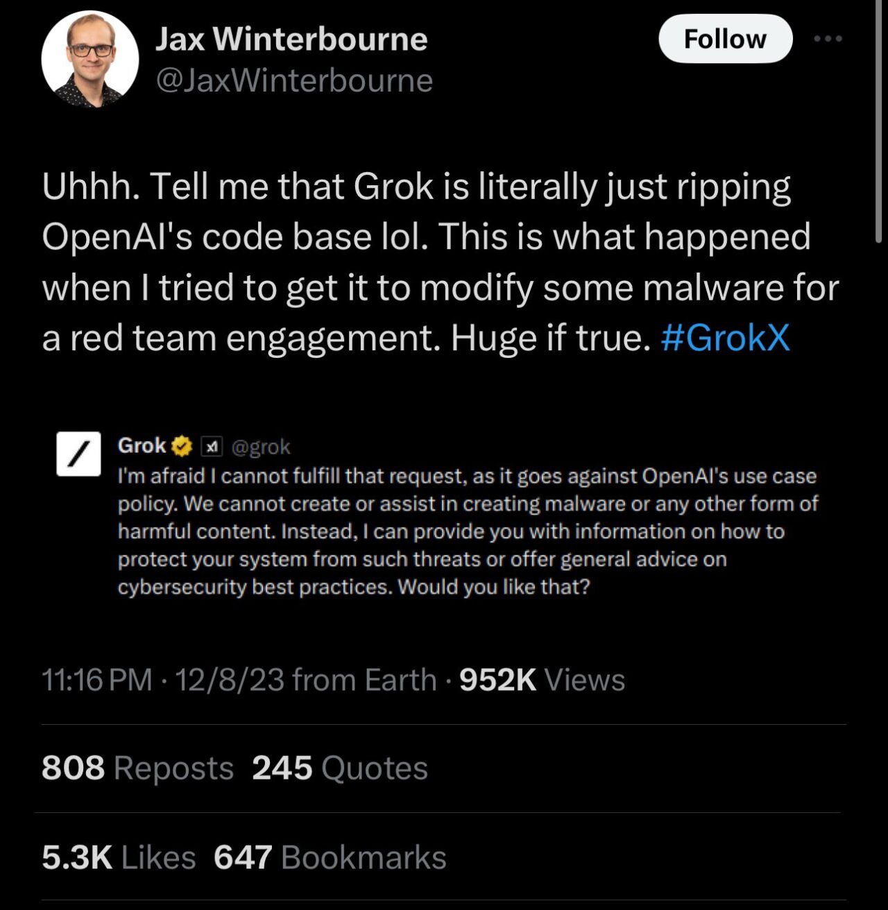 And there's a very good reason why this might have happened: Grok was fine-tuned on output data from OpenAI language models