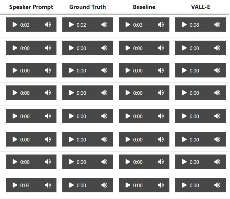 Вот здесь на сайте проекта представлены разнообразные образцы. Speaker Prompt - образцы речи, Ground Truth - запись необходимого текста в исполнении человека, с которого был записан образец, Baseline - традиционный преобразователь текста в речь, VALL-E - работа нового ИИ.