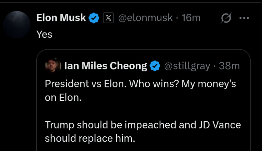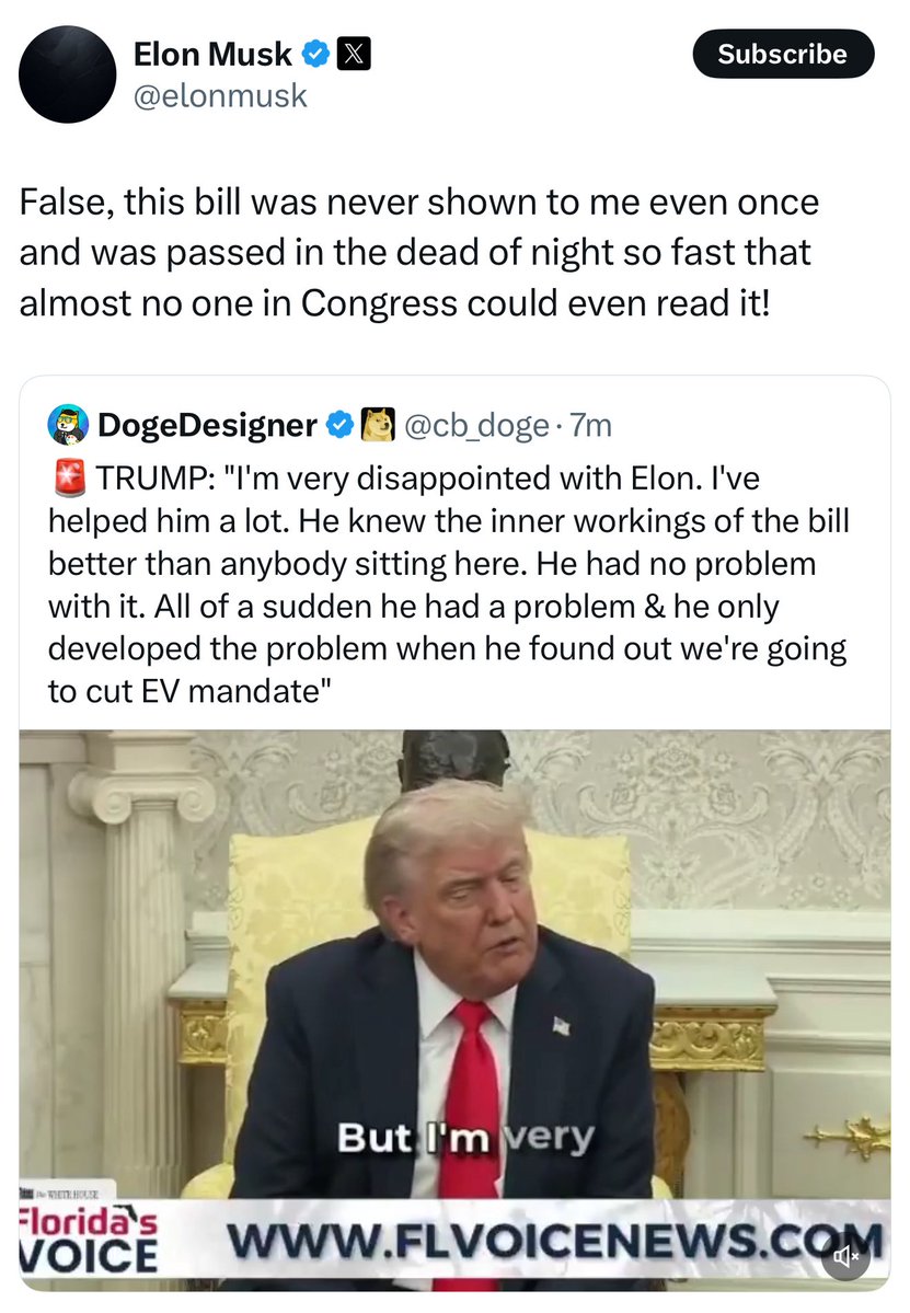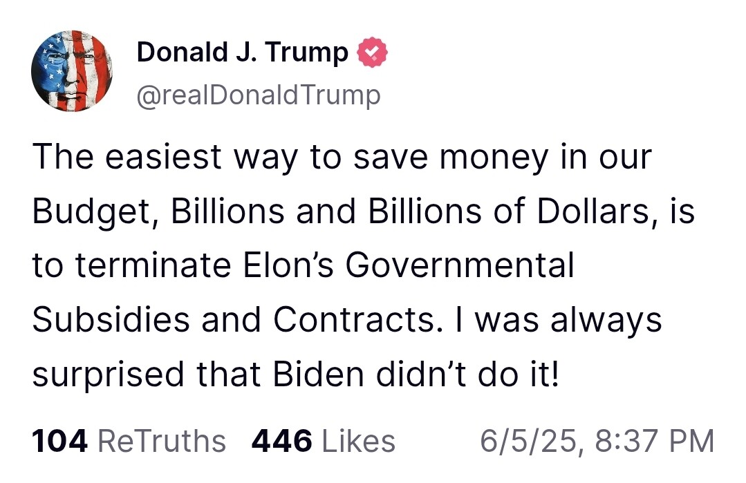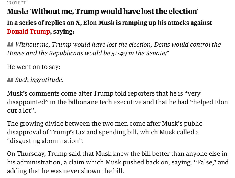 Such ingratitude? Взрослый дядя Маск не знает поговорки "Оказанная услуга ничего не стоит". А Трамп знает.
