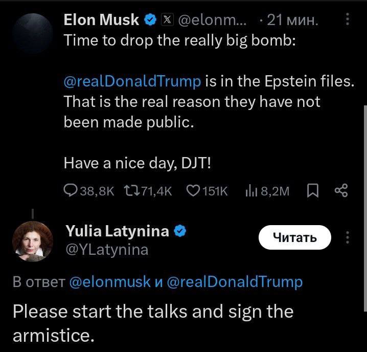 Интересно, как будет дальше развиваться тема компромата, поднятая Маском.