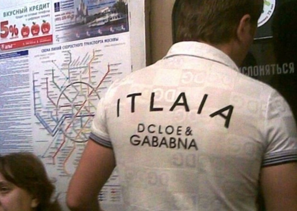 Вижу иногда смешные варинаты, например, у Слепакова на олимпийке была перевёрнутая адидасовская капуста, а вчера у парня футболка с отзеркаленной надписью Nike.