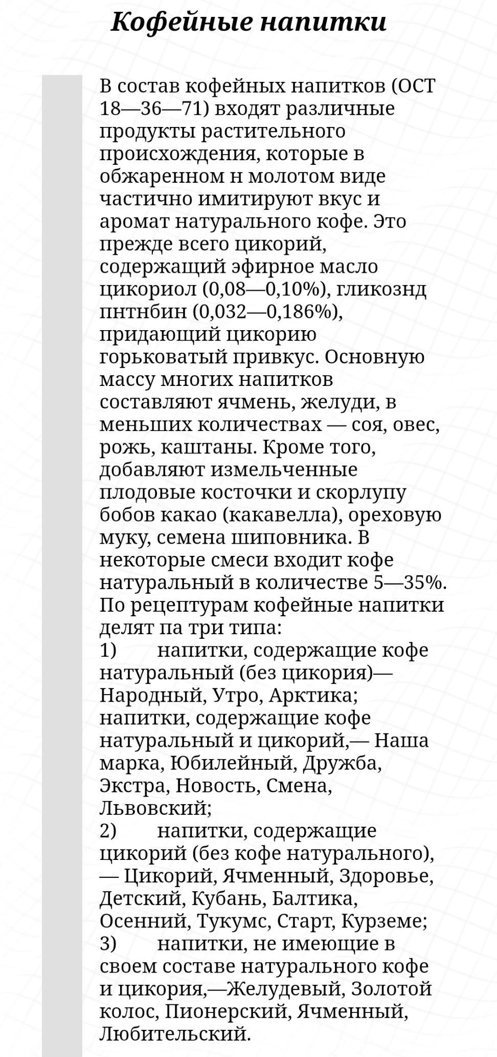 Да, по поводу эрзац кофе - у раннем детстве я много времени проводил на даче у бабушки, и там ячменный напиток Колосок (если не путаю) пользовался большой популярностью, но вот на кофе он ни разу не походил.