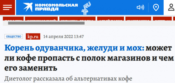 Собственно, мадам-то ладно, это ж нормальное телешоу для утренней дозы оболванивания. А вот Медведев же предлагал в свое время "руссиано" в противовес богомерзкому "американо"? И немало холуев кинулось нести идею в массы. Сейчас вот самое время реанимировать - желудевый руссиано, особенно пропущенный через пищеварительный тракт члена партии, несомненно должен стать любимым напитком патриотов.