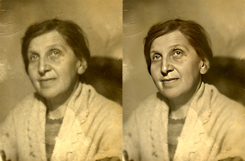 А в целом у меня впечатление, что лицо он не вытягивает, а дорисовывает готовыми заготовками из своей библиотеки. Выходит красиво, но недостоверно. А все, что вокруг лица он поправить не умеет и оно только хуже становится. (Для фото в плохом состоянии)