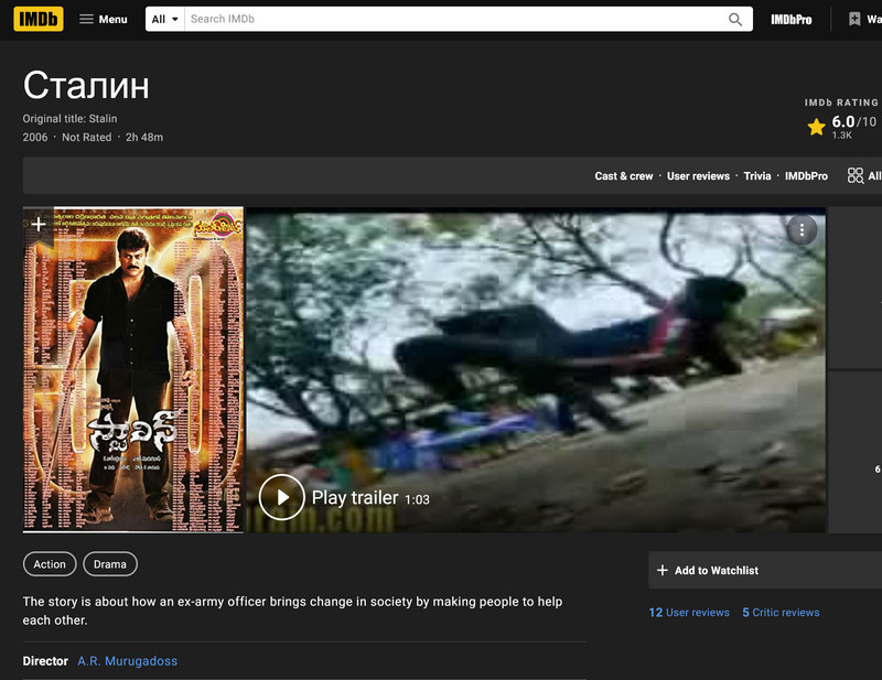 Индийский фильм "Сталин" 2006 года.