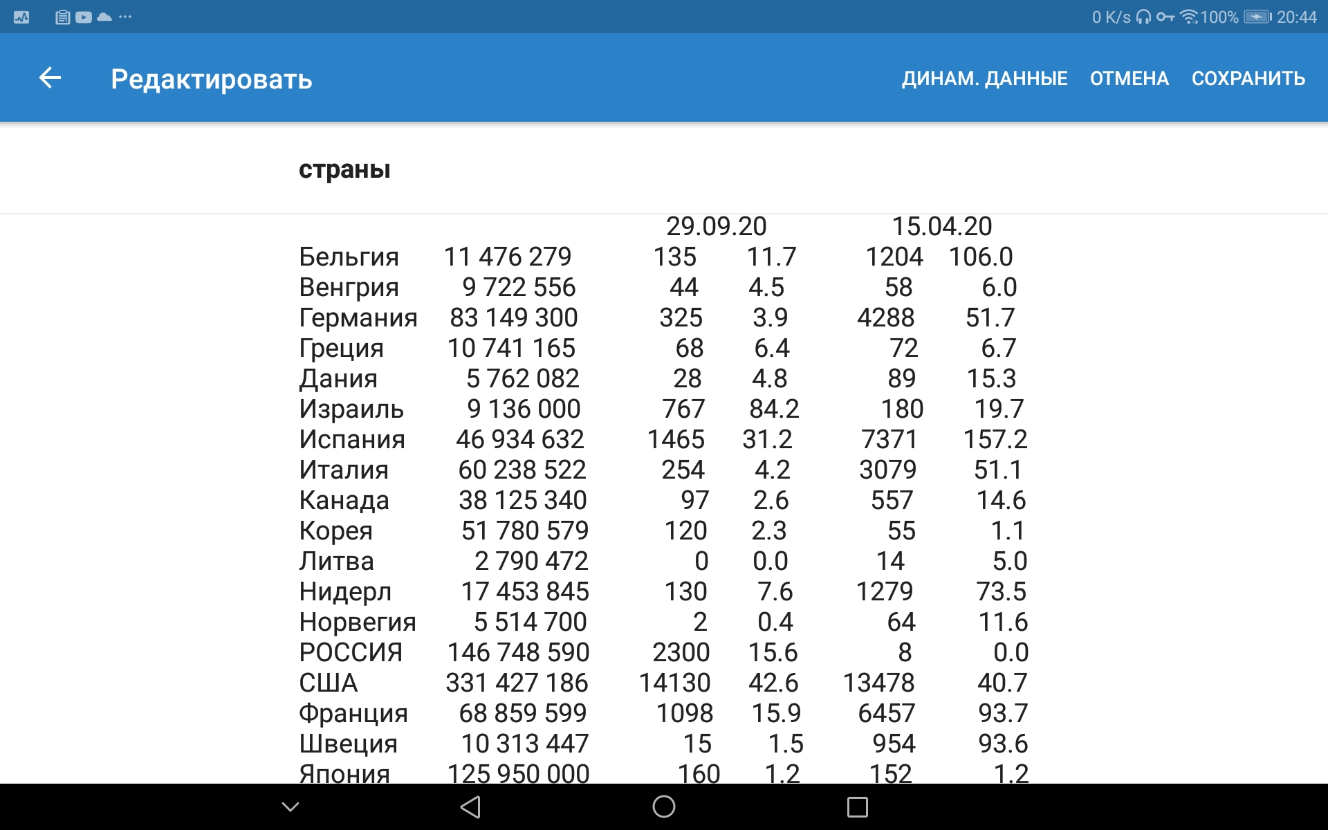 колонка Serious/Critical. Она лучше отражает текущую заболеваемость, чем колонка New Cases, т.к. непонятно как по ней формируются данные и лучше чем колонка New Deaths, т.к. смертность стала значительно меньше чем в марте-апреле. Я соотнёс эти данные с численностью населения в некоторых странах. Вот что получилось на вчерашний день: