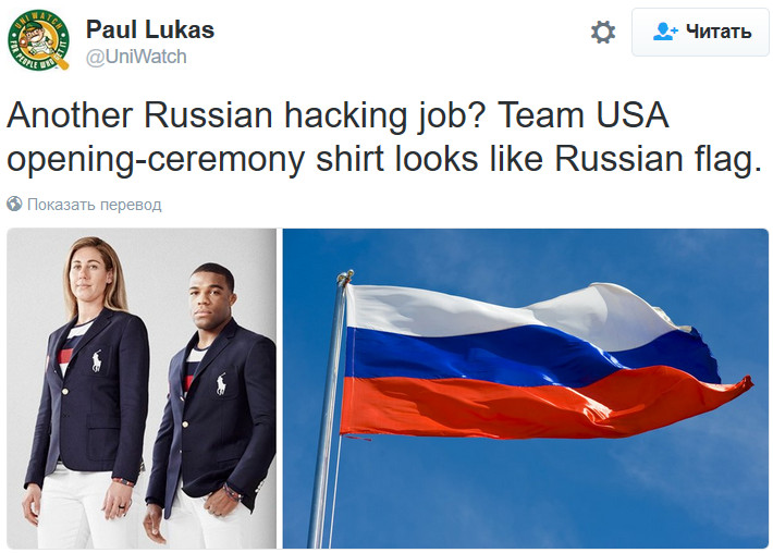 Ах-ха-а-а-а-а, в Штатах с формой олимпийской сборной тоже все не слава богу. Наших одели в какой-то кошмар а-ля Буба Касторский (да еще и с кедами вместо туфель), но со штатниками тоже все прикольно.
