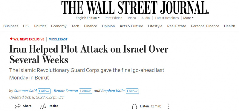 В The Wall Street Journal статья о том, как Иран помогал готовить нападение на Израиль в течение нескольких недель. Но там paywall, я нашел еще несколько статей на эту тему.