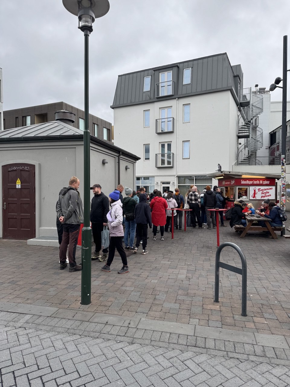 А это киоск с хот-догами из бараньих сосисок в Рейкьявике, в котором Билл Клинтон однажды пробовал эти хот-доги. До сих пор очередь не рассосалась.