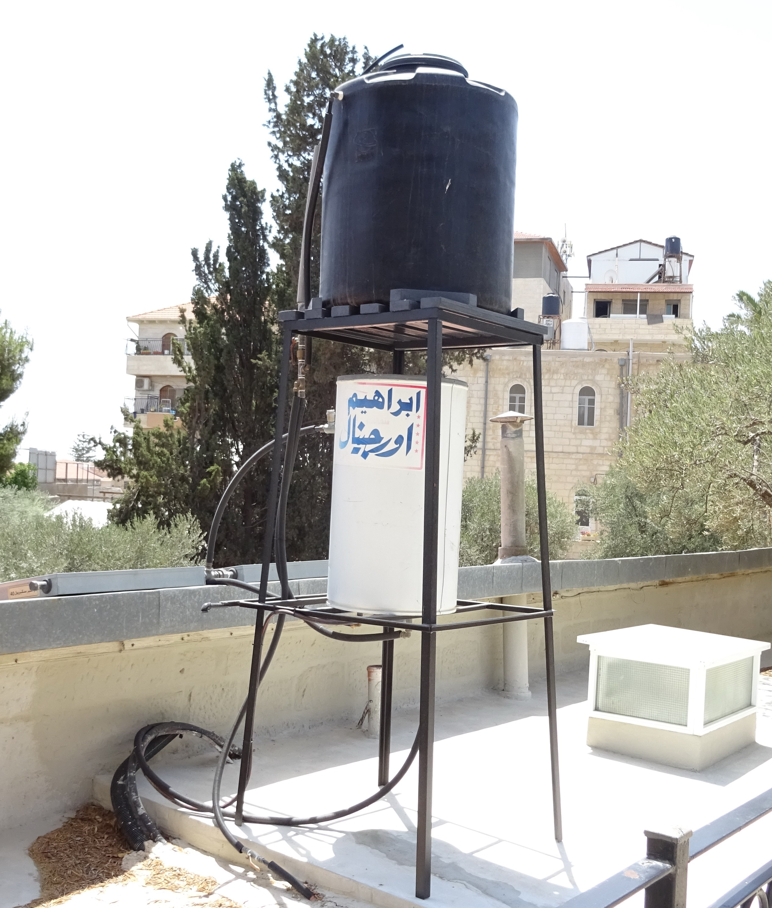 По крайней мере лет десять назад в таком баке, висящем на южной стене сарая, литров на сто, вода летом нагревалась градусов до семидесяти.