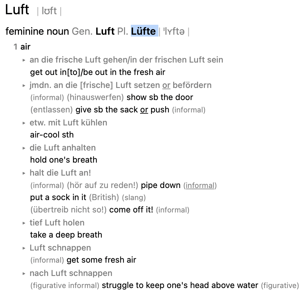 Вы "Luft и Lüfte" имели в виду, наверное?
