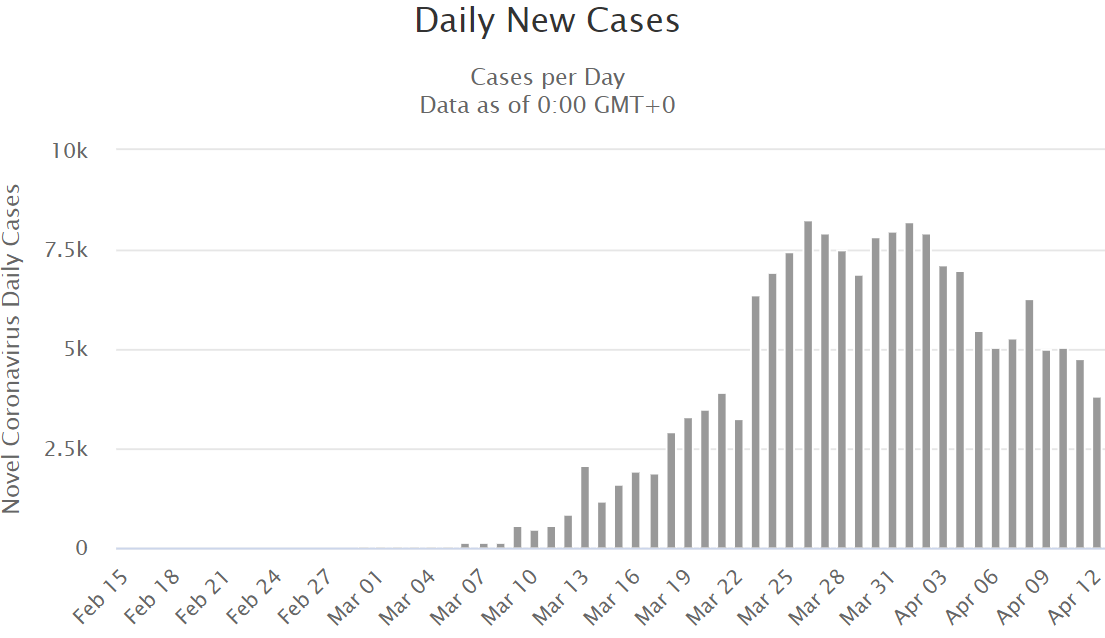 Смотреть на daily cases - это не очень информативно. Рекомендую правый нижний график с сайта Джонса Хопкинса: