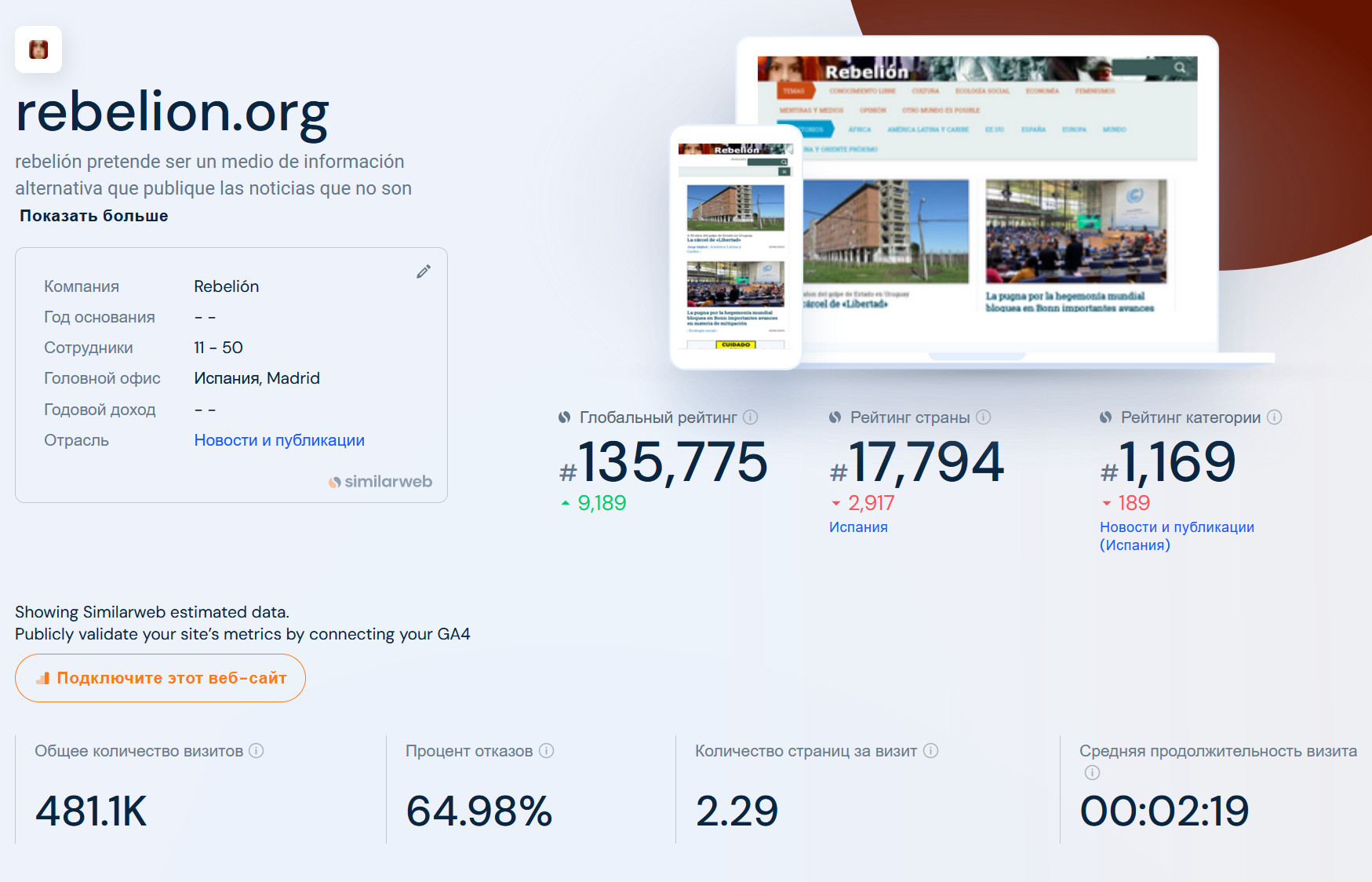 Ради хохмы посмотрел статистику этого, так сказать, издания. 480 тысяч визитов за месяц? 1169 позиция среди испанских новостных сайтов? То есть это, цитирую Википедию, "наиболее читаемый во всем мире информационный сайт"?