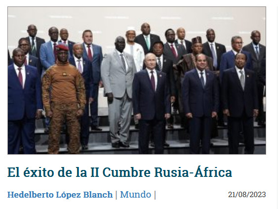 А вот что за Rebelión такой - в Испании о нем ничего не известно. Зашел посмотреть. Ну, типа "независимое издание", причем истоки этой "независимости" видны за версту: пишут о выдающихся достижениях РФ на международной арене (одна статейка "Успех российско-африканского саммита" чего стоит), ну и бесконечное поливание Украины, которая, дескать, давно должна была сдаться, а она все упорствует и упорствует.