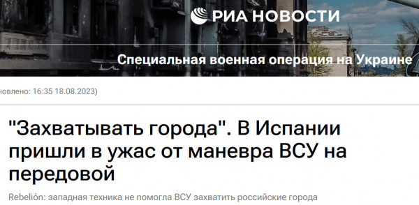 Сама статейка - обычная пропагандистская сильно попахивающая хрень, а уж подзаголовок про то, что западная техника не помогла ВСУ захватить российские города (то есть те города, которые путинская армия временно захватила, а Путин их аж прописал в сортирный листок, который в РФ почему-то именуется конституцией) - ну, там вообще вопросов никаких не было.