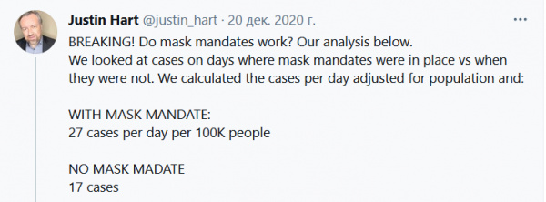 Можно конечно сомневаться в эффективности, но быть убеждённым в том, что из-за масок число может быть больше без игр с числами - это диагноз похуже коронобесия:)
