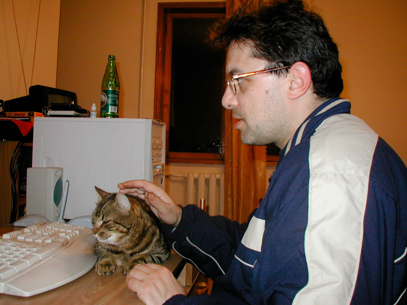 Знаковый кадр из Сочи 2001 года, февраль. Мы с котом Бубликом пишем нашу первую кинорецензию. Премьера фото, раньше не публиковал.