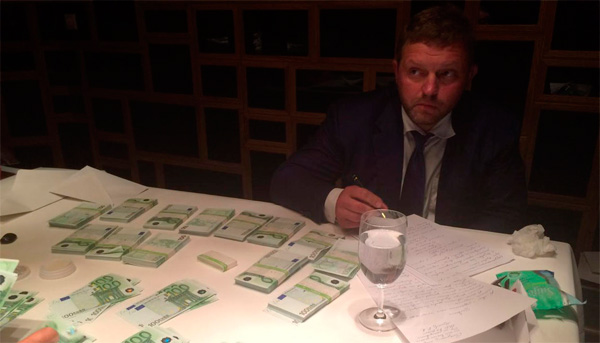 Поэтому все для картинки: ресторан, белая скатерть, помеченные купюры, не хватает только горки кокса до кучи. Подстава стопудовая.