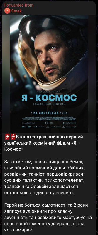 Украина сняла "You are the universe", "Ты - космос", фантастистическую трагикомедию.