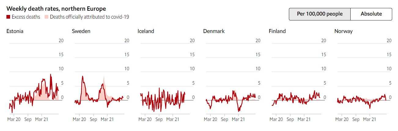 Реальный показатель лишь один – количество точно определённых смертей от ковида. И тут Швеция всё ещё "на коне" среди всех соседей, увы...