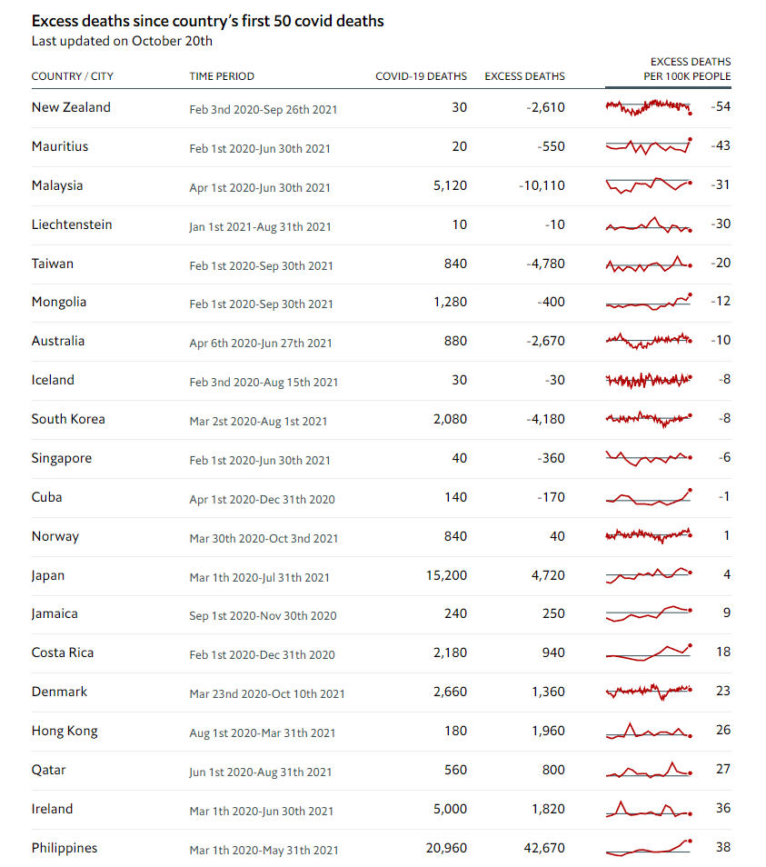 Табличка повторюсь очень интересная, но для серьезного анализа - надо сравнивать не просто избыточную смертность за весь период пандемии, а отдельно брать периоды, когда вакцины вообще не было, и когда началась вакцинация. Так же отдельно считать те периоды времени, когда действовали ограничения (и какие) и когда их снимали.
