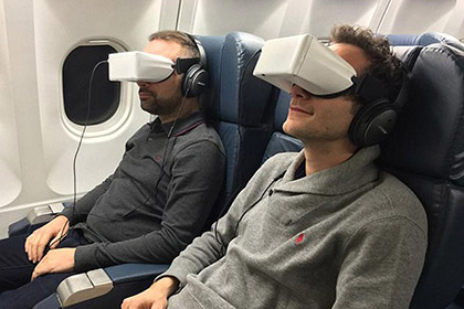 При использовании очков перед пассажиром появится изображение на широкоугольном экране, которое никто не сможет видеть, кроме владельца гаджета.