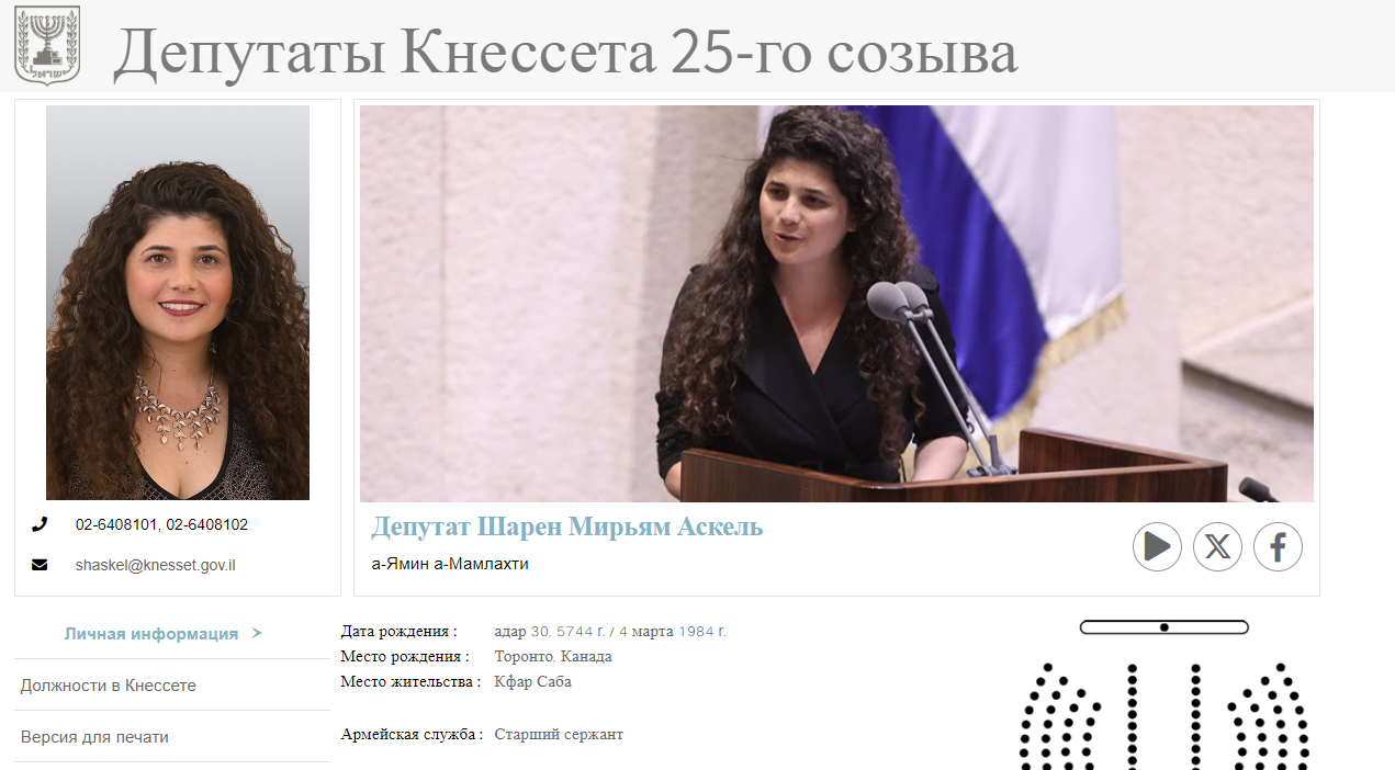 Шаррен Хаскель и израильский парламент