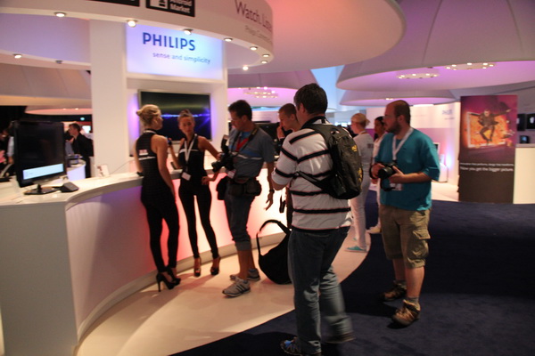Приходим в павильон 22. Каганова там нет. На вежливую SMS'ку на иностранном для прикола: "Where the fuck are you, sir", Каганов пишет, что он у второго выхода, а мы, видимо, у первого. Мы на самом деле внутри павильона, где Доля, как велит ему журналистский долг, фотографирует гаджеты на фоне красивых девушек.