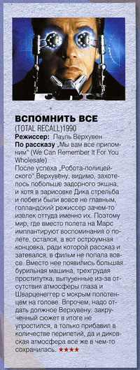 Ну, хоть Шварца влепили, уже хлеб. Хотя это вовсе не из Total Recall, а из "6-го дня". Причем кадр непосредственно с обложки диска, тут уж не знаю, как можно перепутать...