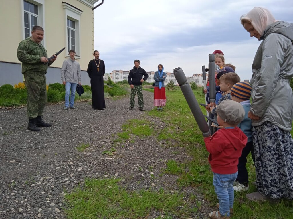 На фото уроки ножевого и штыкового боя для детей при храме РПЦ.