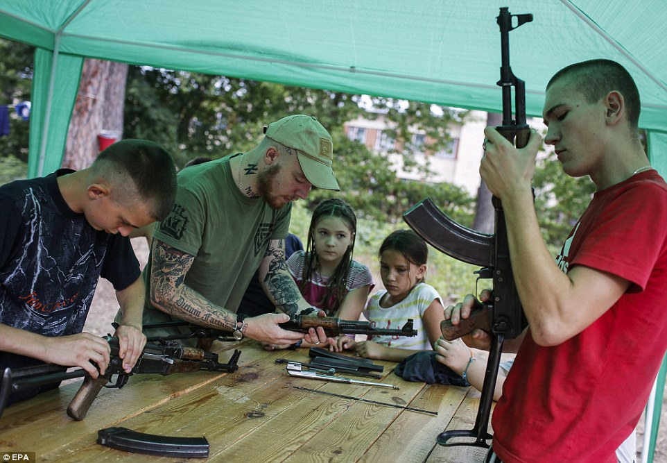 Британская газета Daily Mail в 2015 г. опубликовала несколько фото из подобного украинского лагеря юных Азовцев.