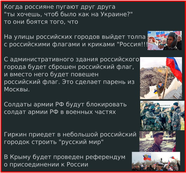 Наконец, кратко выразить все сказанное выше можно знаменитой фразой адепта «русского мира» Егора Холмогорова: «Если надо для святого дела — будем врать всей страной».
