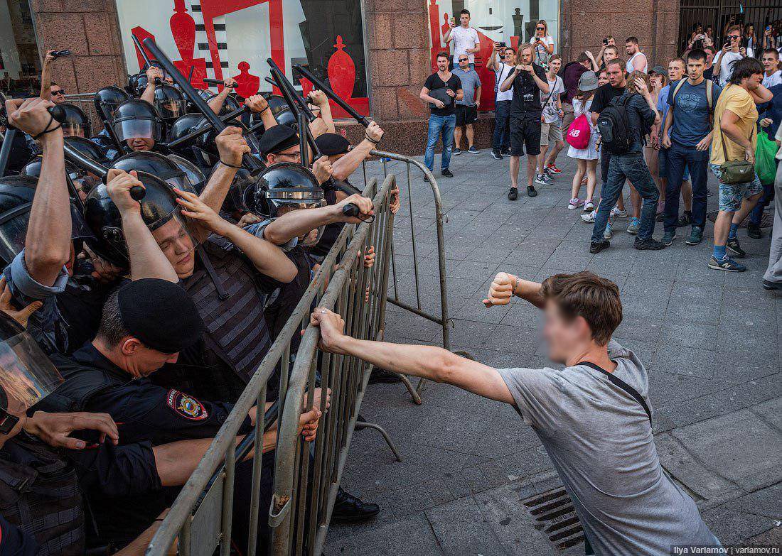 Все наглядно - куча озверелых мразей-полицаев, против них мало (один даже) человек. И остальные фотают, как будто их это не касается. Капец, конечно.