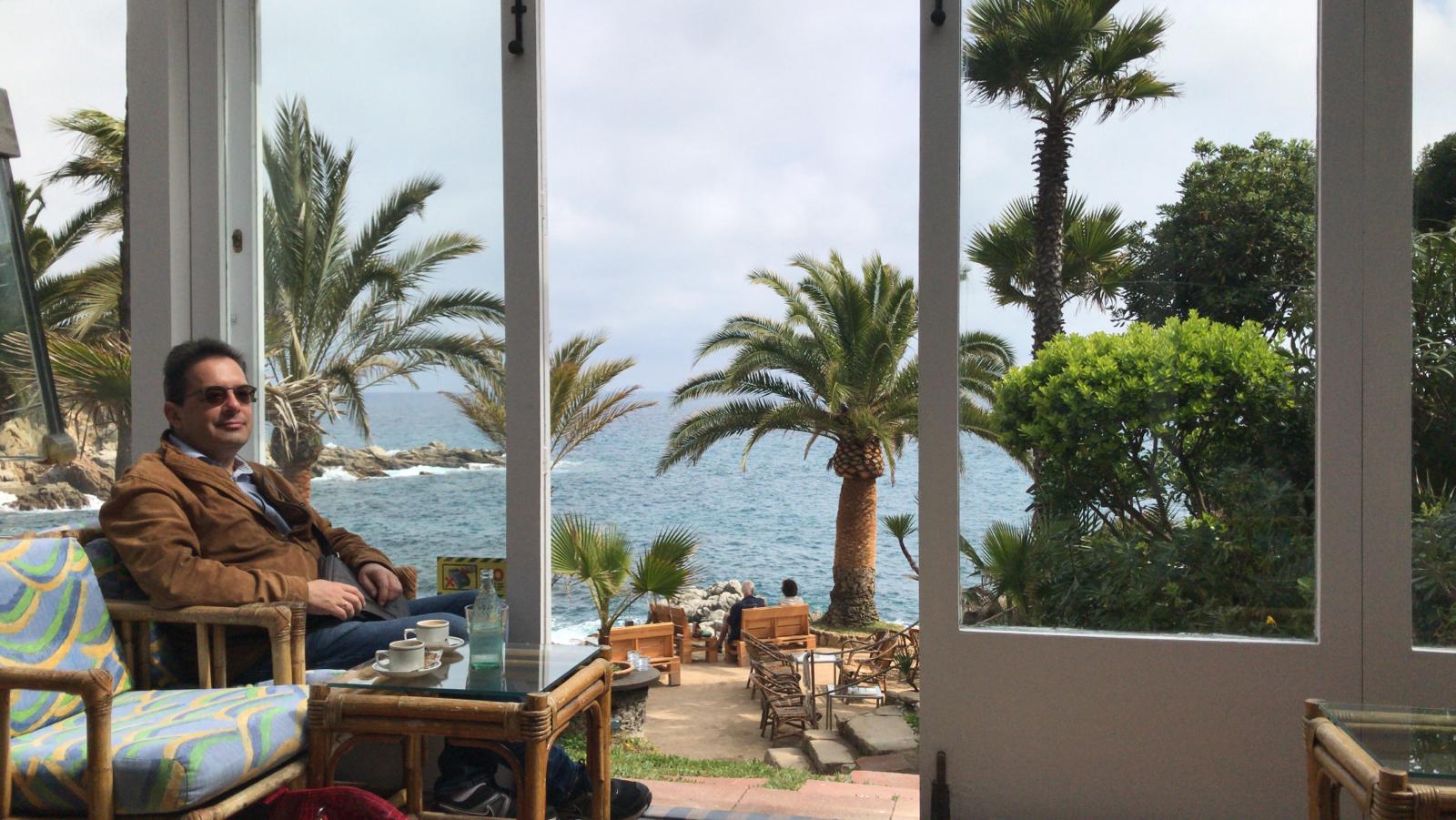 Скатались в чудесное место - кафешку Cala Banys, стоящую в заливе Льорет-де-Мара. Там потрясающе красиво, так что цена в 10-12 евро за коктейль кажется вполне оправданной: добраться туда - очень и очень непросто, дорогу прокладывали владельцы кафешки, так что почему бы и не заплатить. Тем более что мы коктейли не пили, ограничились двумя кофе и чаем всего за 10 евро за все.