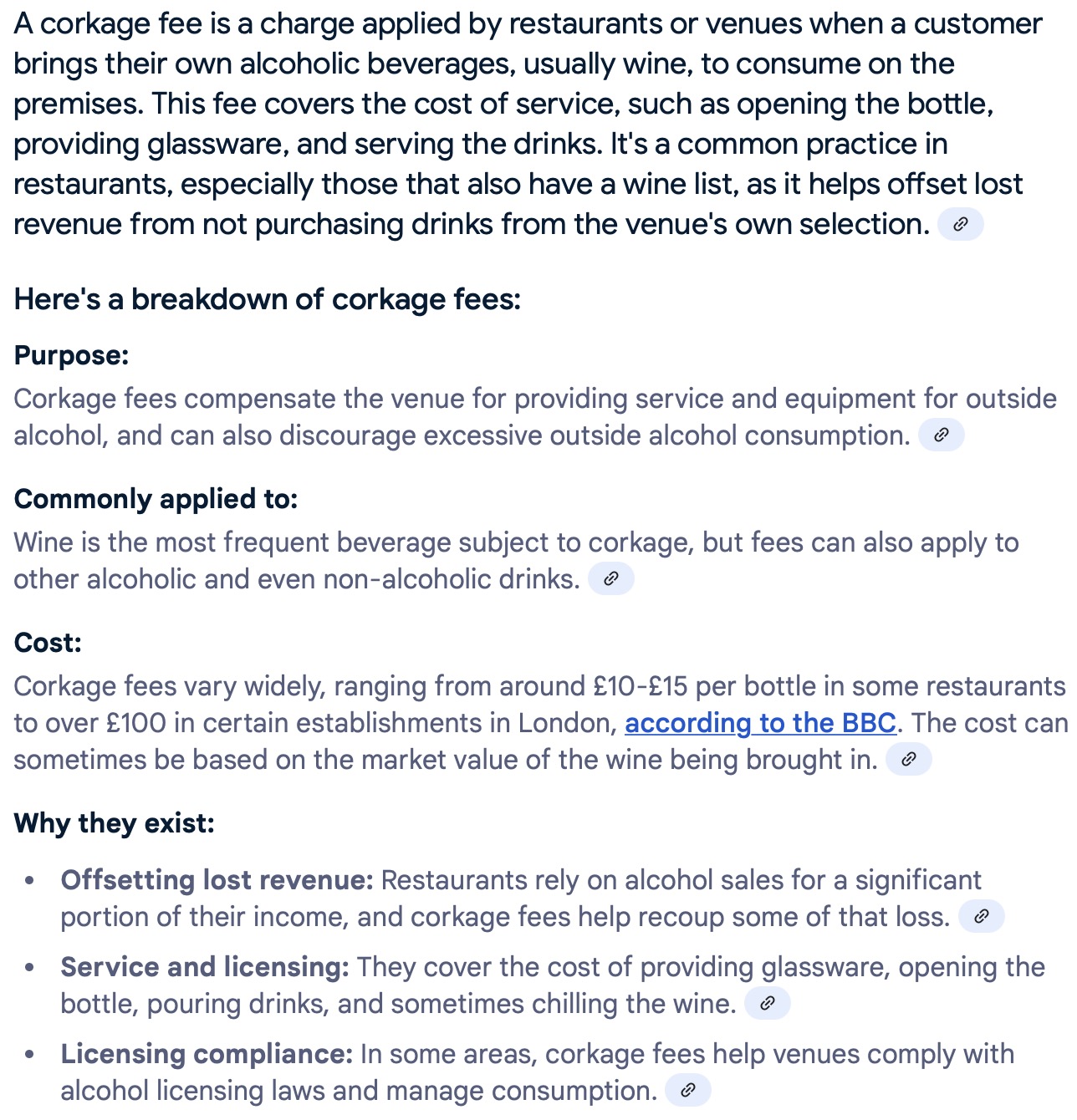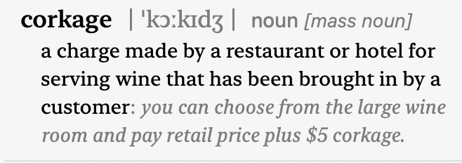 Пробковый сбор это другое, так делают заведения, не продающие спиртное (не хотят или не могут получить лицензию), но не желающие терять клиентов, желаюших выпить под еду. Удобная штука для посетителей.