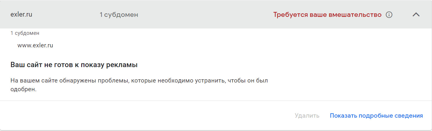 Тогда я решил попробовать поставить свои коды Adsense. Но там написали, что так как коды уже год не использовались, то сайт заново нужно отправить на проверку. Отправил. И получил в ответ вот такое - сайт, мол, не соответствует требованиям программы, а в чем именно - не сообщается, только дается ссылка на правила.