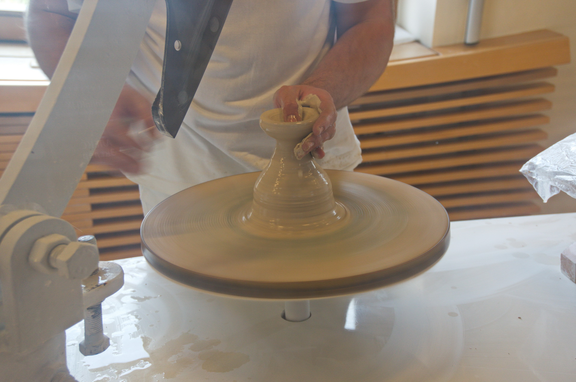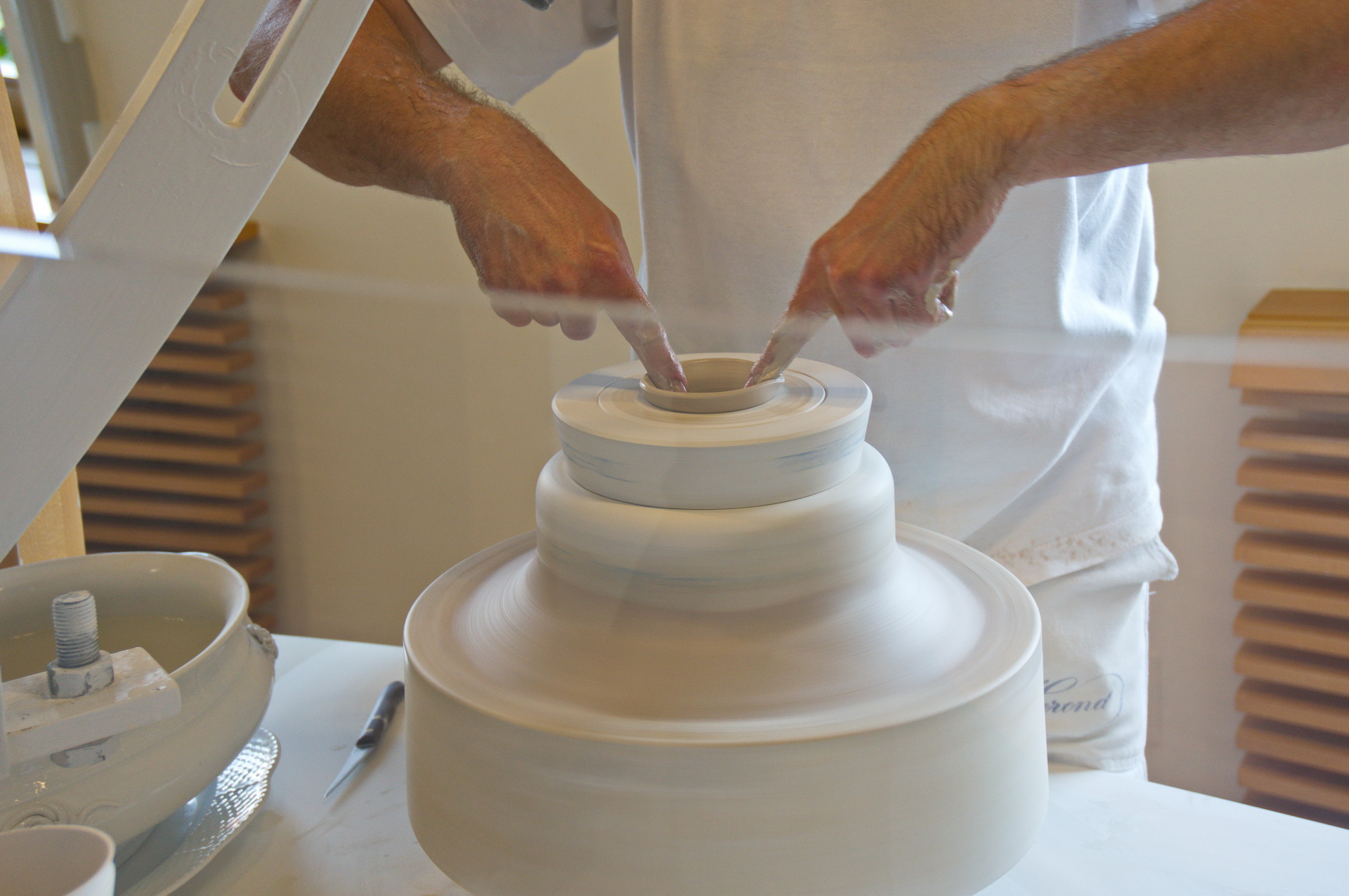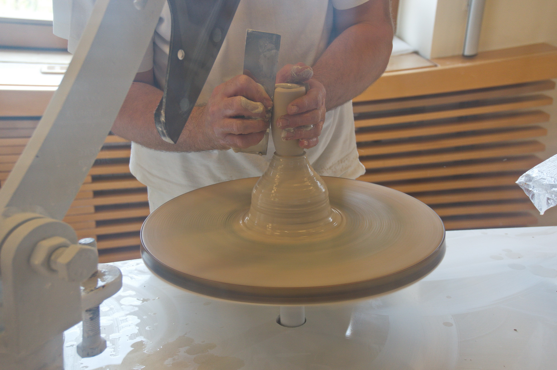 Влажной смеси придается форма на гончарном круге.