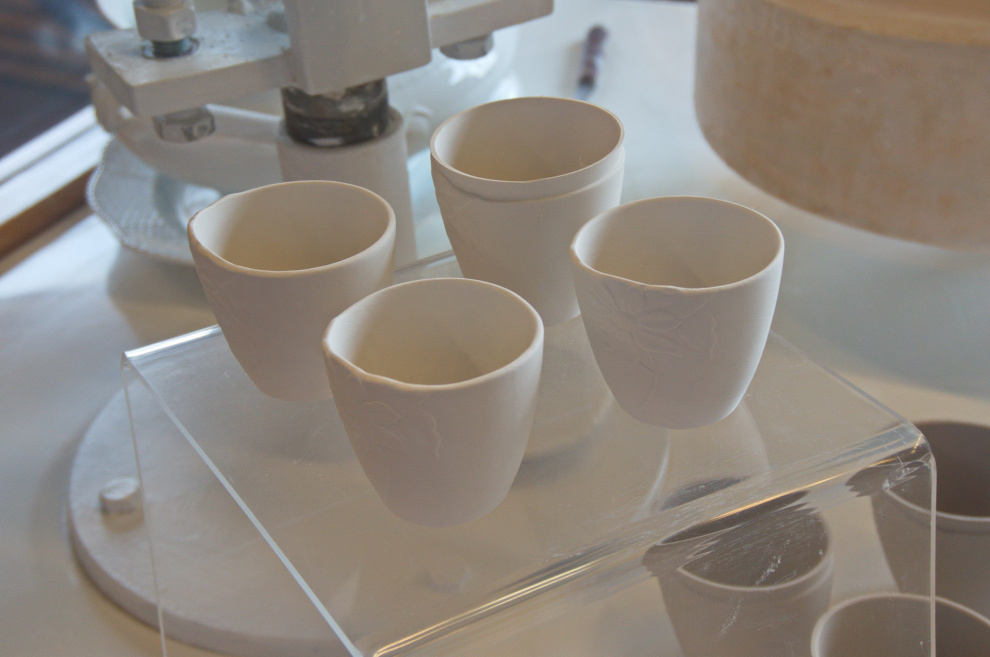 Вращается специальная форма, чашка выравнивается изнутри.